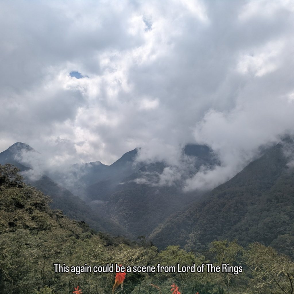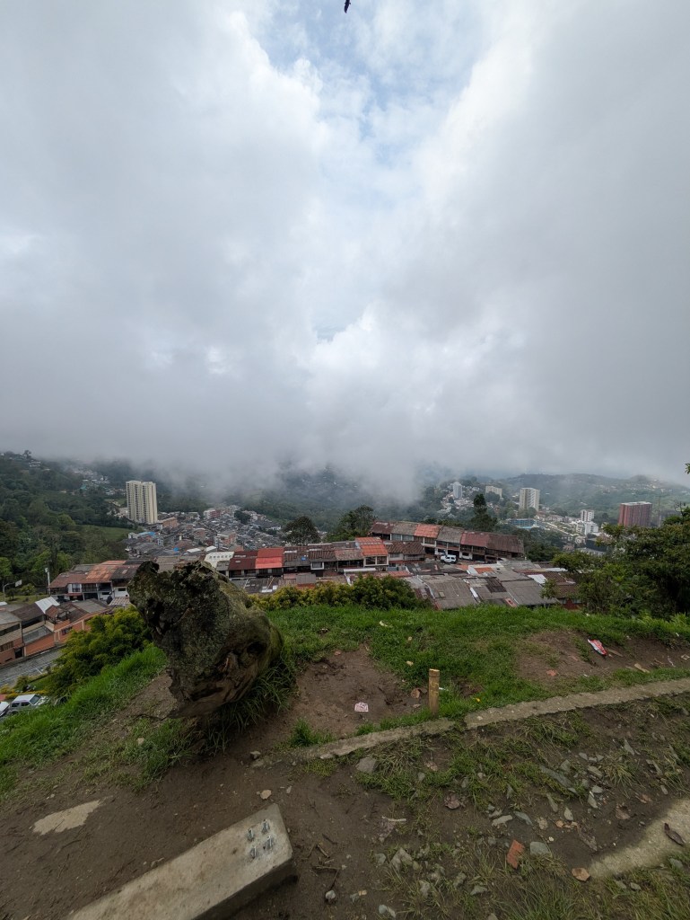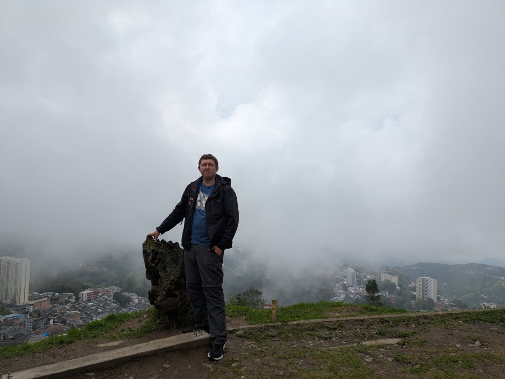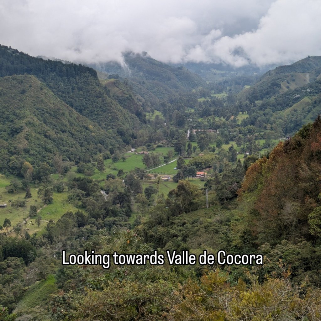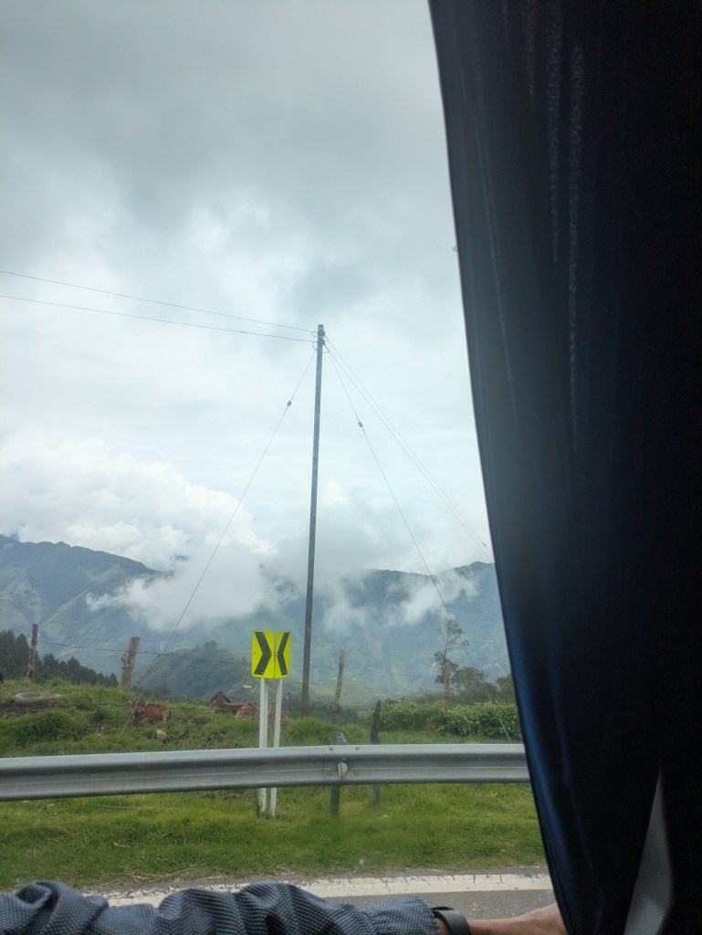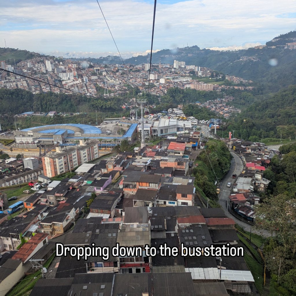 It wasn’t the earliest of starts out of Manizales. About half 9, I was out and on the cable car over to the bus station. After a short ride and a quick bit of breakfast we were on way by 11. This bus however was a full bus and unfortunately I got the worst seat being sat right behind the dark metal pane behind the drivers seat so could barely see much outside and there were a lot of twisty roads again much like the ride to Manizales. I don’t get car sick much but this was making me feel queezy. From what we could see weather was quite bad all the way up so naturally this slowed things down.