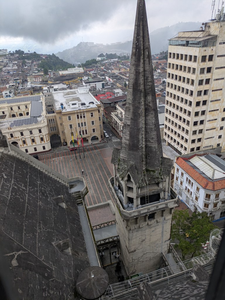 After this we jump on a short 20 minute bus ride where we then get off just outside and we have a walk around different view points in an area named Chipre (Spanish for Cyprus). There is also a church here which is a replica of the original cathedral in the centre. She explains to me that Manizales is quite a new city being founded in the 1850’s by a handful of settlers from Medellin.