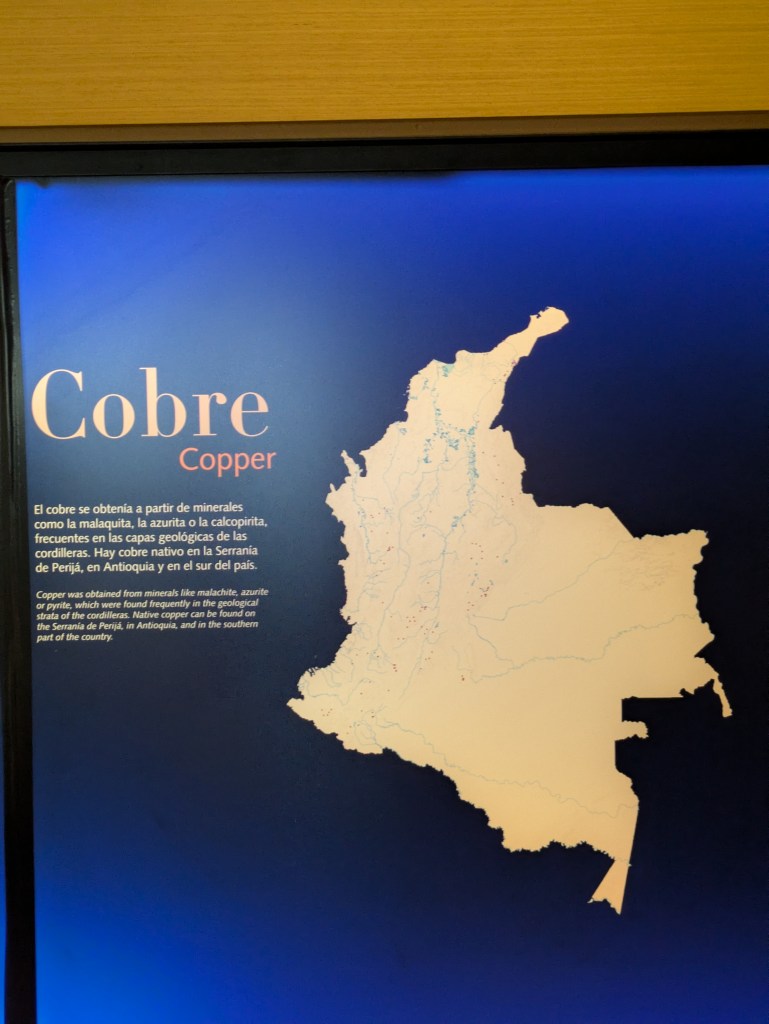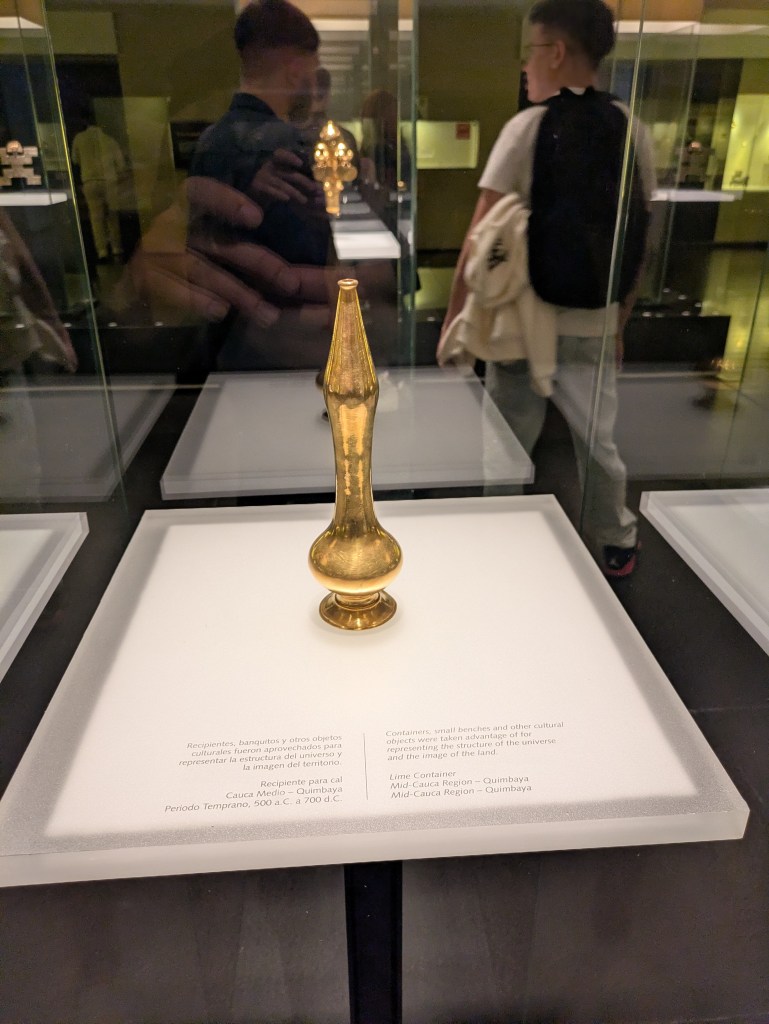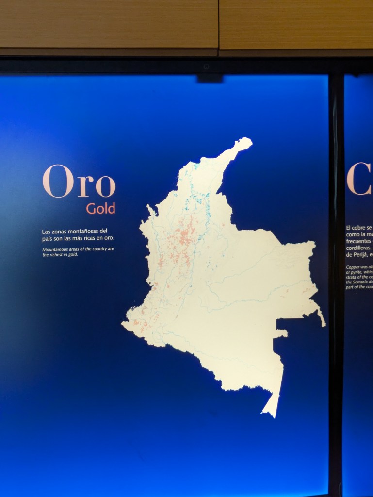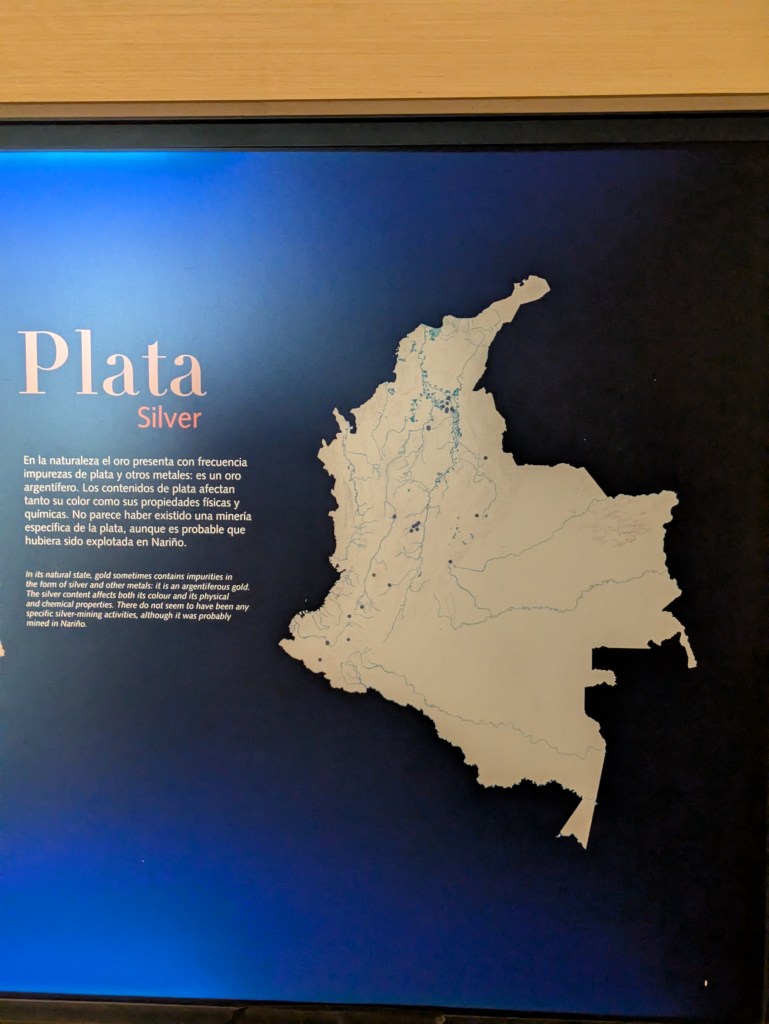 It’s a 3 story museum and there is a lot to see and read up about though today I was a little short on time so I didn’t read everything though it was more about the ancient tribes that lived in Colombia before the Spanish conquest such as the Muisca, Tairona etc. There are a lot of exhibitions which show the various artefacts and personal articles made by these tribes. In short what we know was the land was (and still is) abundant with Gold, Silver, copper and platinum – all the stuff which goes into creating money and many of the consumer goods which we take for granted in the west today.