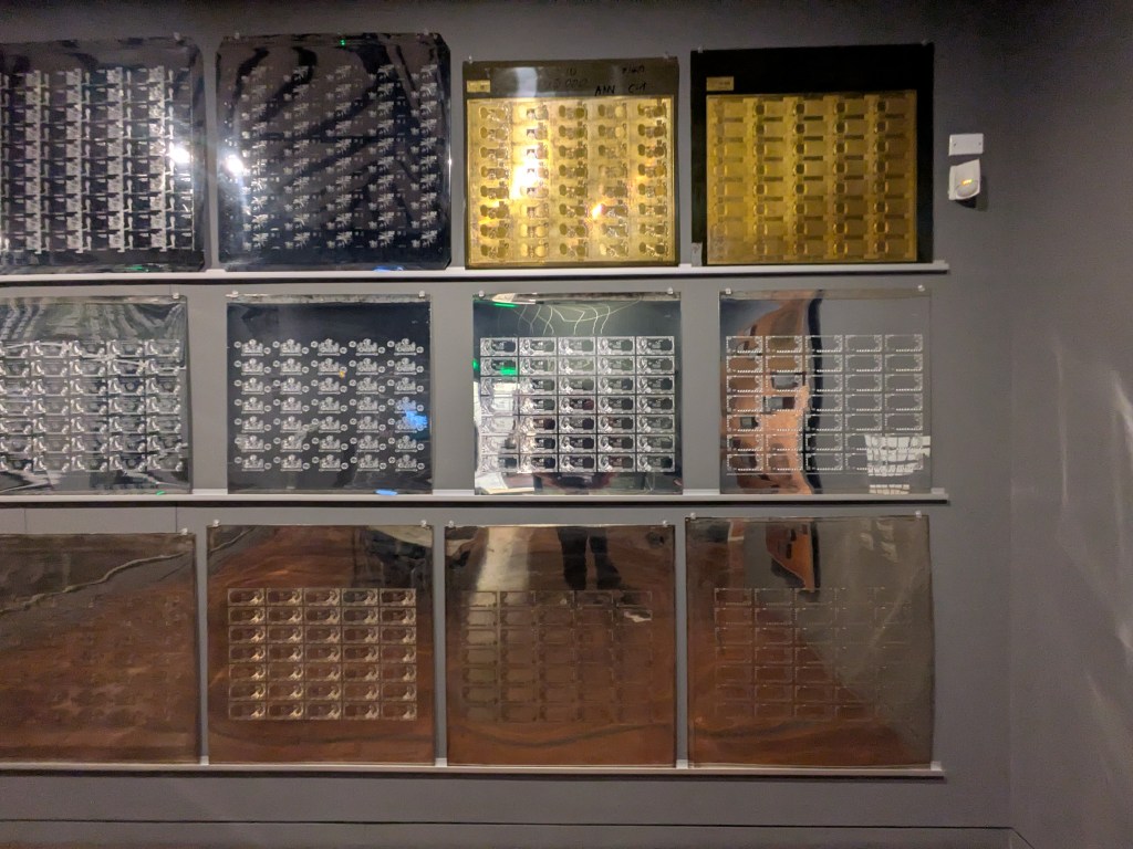 It has within coins from different eras and a detailed explanation of how much care and precision went into smelting coins for currency. Gold and silver content had to be very precise at each stage of the smelting and when the ingots were smelted again and turned into coins they had to be carefully weighed again for purity and to make sure it was all exactly to what the law said it was. This was of course the old fashioned way of doing it – back from the days when a dollar was actually worth a dollar. Modern times it’s a whole lot simpler – fed printer go BRRRRRR and keep on printing till we go full Weimar Germany once again!