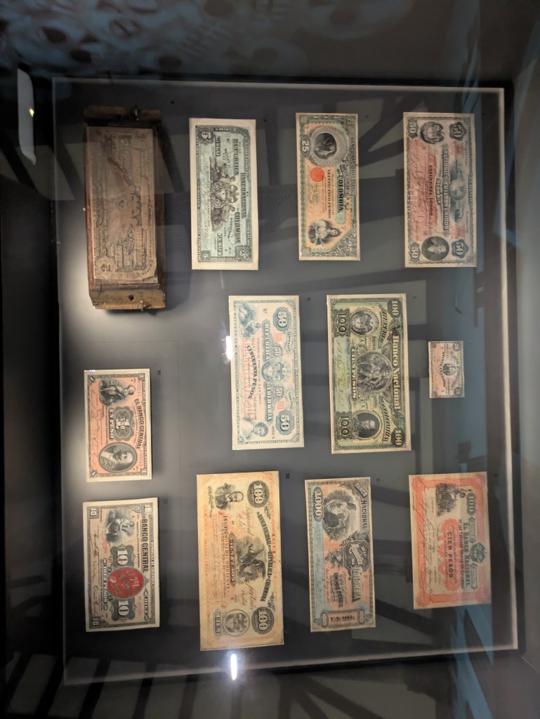 Taking a walk out past these hombres I come across another museum called “Museo casa de moneda”. As you can expect this was an old minting house turned museum. Go inside they have all the old presses there and an exhibition of the history of money through Colombia’s time as a Spanish, colony up to independence and into the modern age.