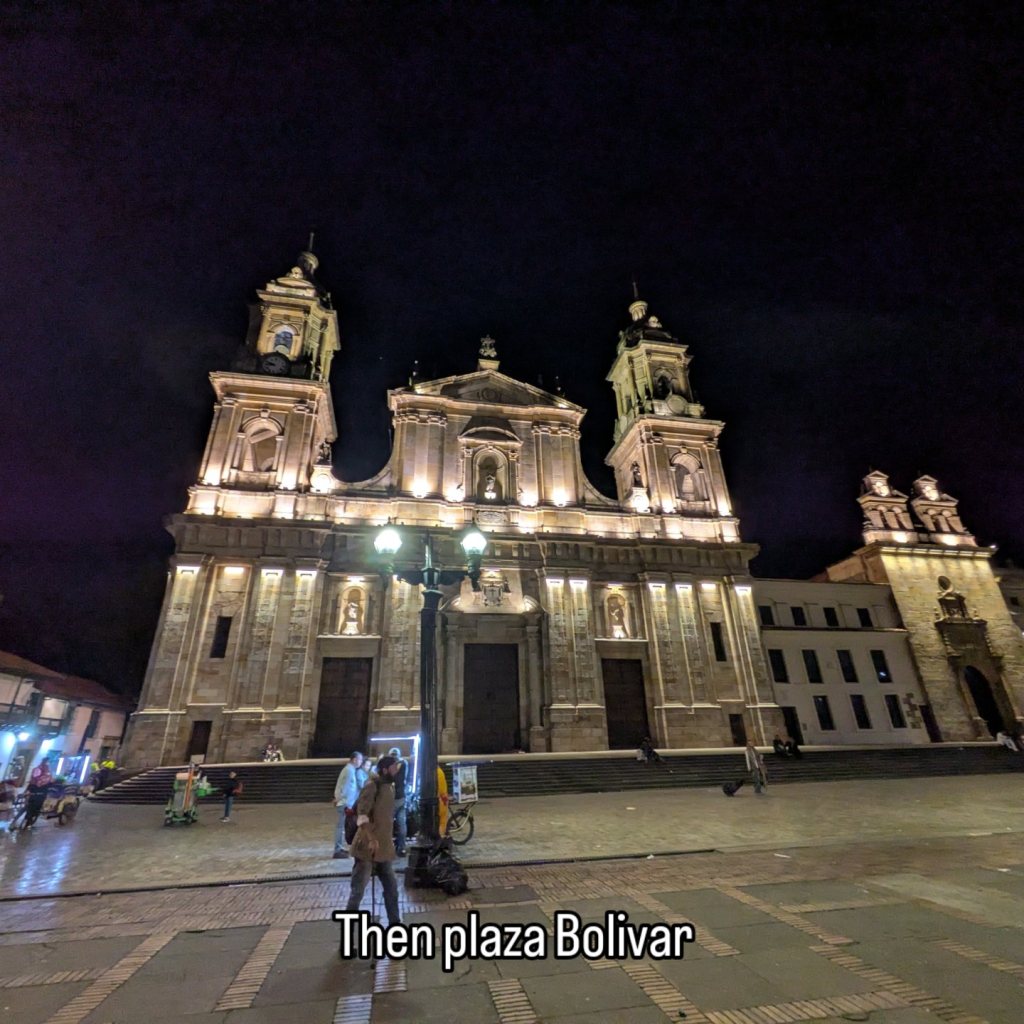 After Tejo we go for a walk to Plaza Bolivar, that square where Gustavo was doing his speeches when the Colombians were having their soberana (Sovereignty) march the other week after Trump was threatening Colombia after the Maduro raid.
