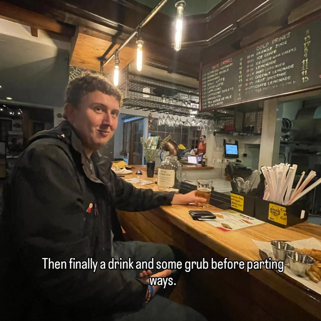 Once at the top I am able to get on the half 1 Willy Jeep back to town. Once again I’m hanging off the back. Once back in town I treat myself to a well earned post hike pint and some lunch. Lovelllyyyy!!!