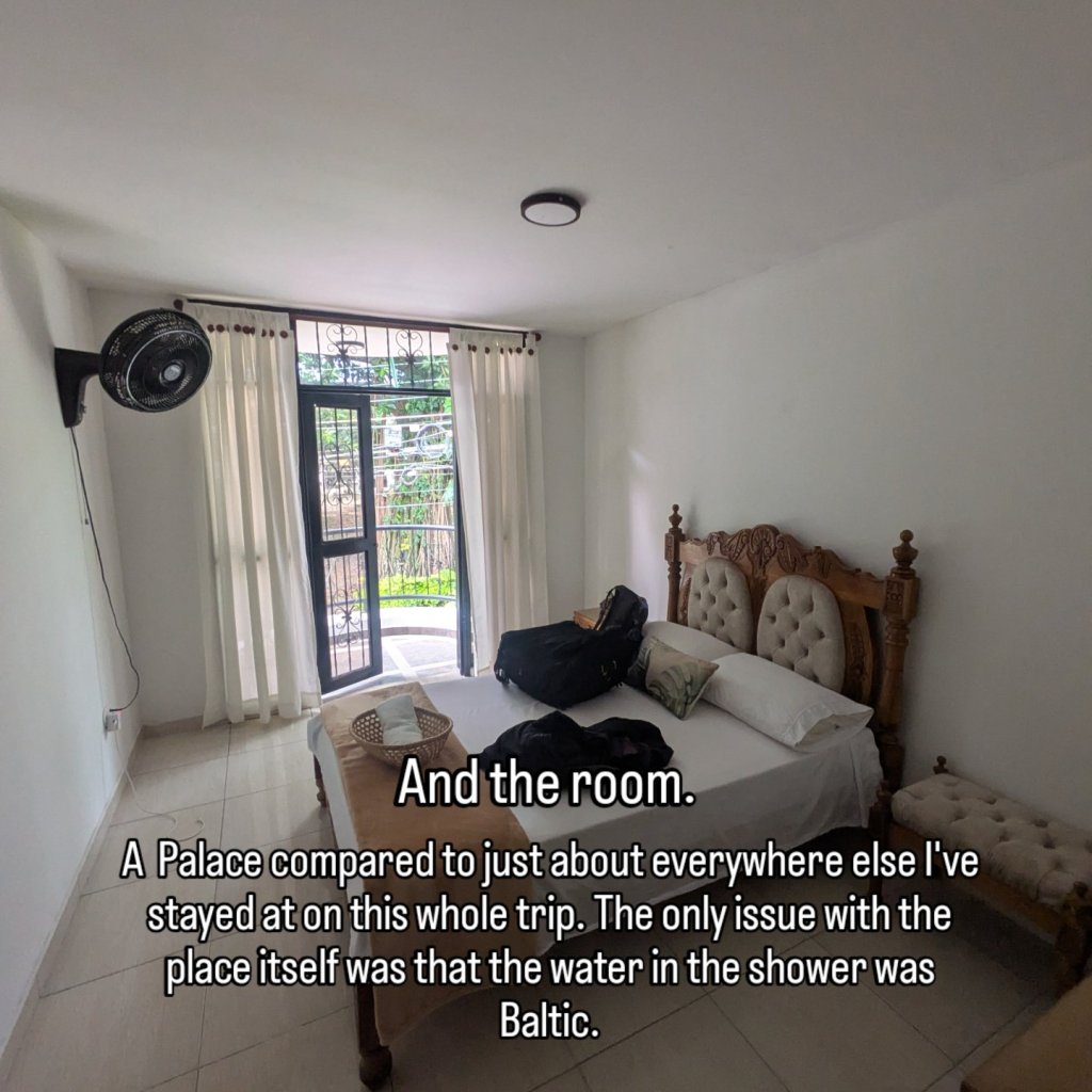 Entonces vamos a empezar! First up my initial 2 nights in this hostel was done and so I asked to stay one more night as while I wanted to move out of there I needed to do laundry and catch up on other admin bits so I extended by 1 night all okay then asked about a laundry place nearby, they said they could do it, without looking for others I accepted but coming to pay I got hit with more gringo tax with my loads being like another 3000 peso per kilo to other people’s (60p) not much in the grand scheme but it pissed me off – people trying to nickle and dime an extra couple of bucks out of you as the gringo has been a constant thing across much of Colombia and a constant piss off to be honest. You’d get it occasionally in Mexico and Central but here its probably like a 1/3 chance there will be something and it’s always petty like trying to put an extra drink on your bill or prices changing in places depending on who’s serving you. One day something costs X amount then another day the same thing is 50p more then back to the other. Petty but it’s annoying.