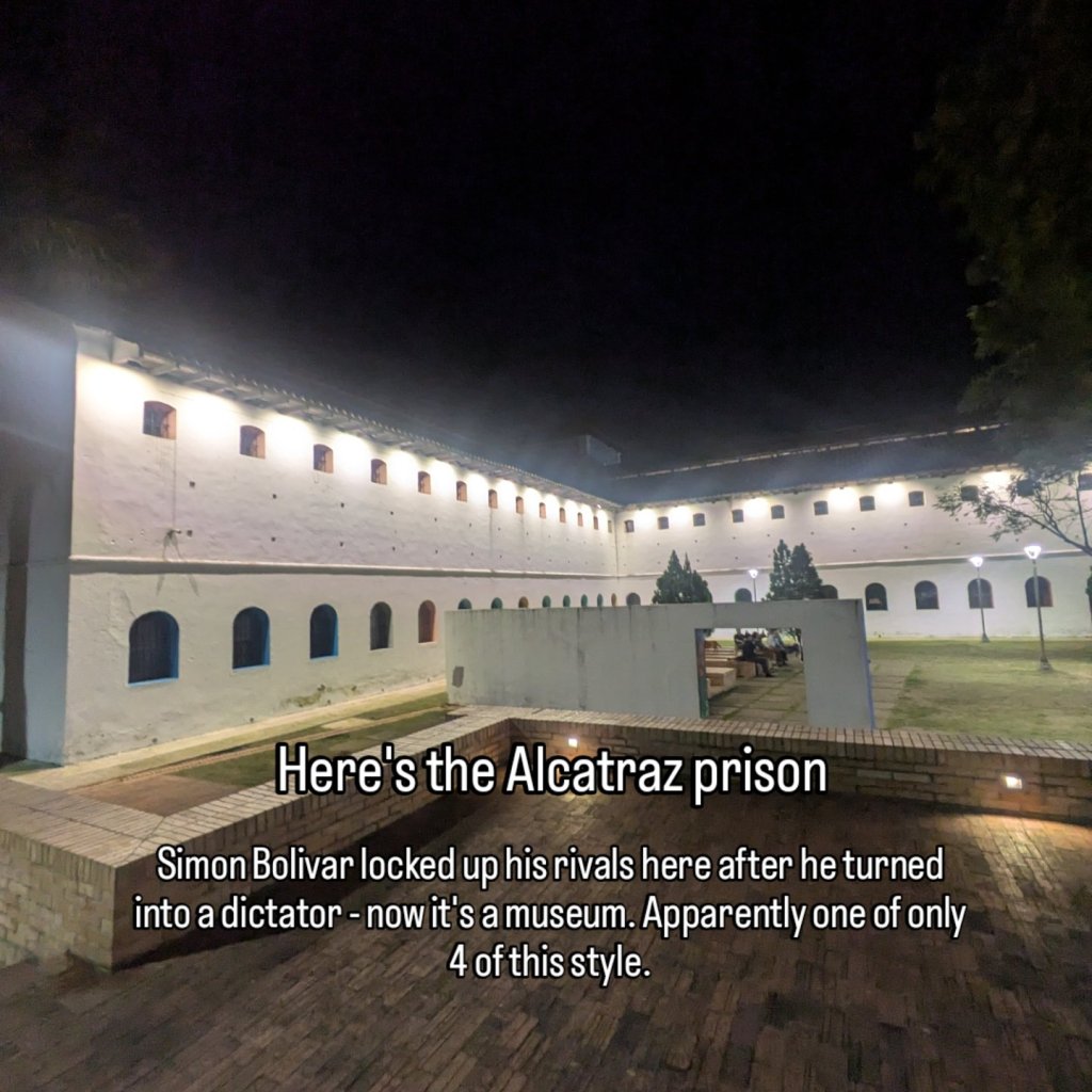 I wrapped up that tour and then took a walk through Plaza Bolivar. Get some photos then get touted by some shifty looking fellas who would do this thing where they would point to the floor like you dropped something and they try to come up to you and make chit chat, presumably then youd get asked if you want to buy powder or something. I didn’t engage and gave them the hand โ and not even said anything. Not sure what the game was there but was not in the mood for more of this.