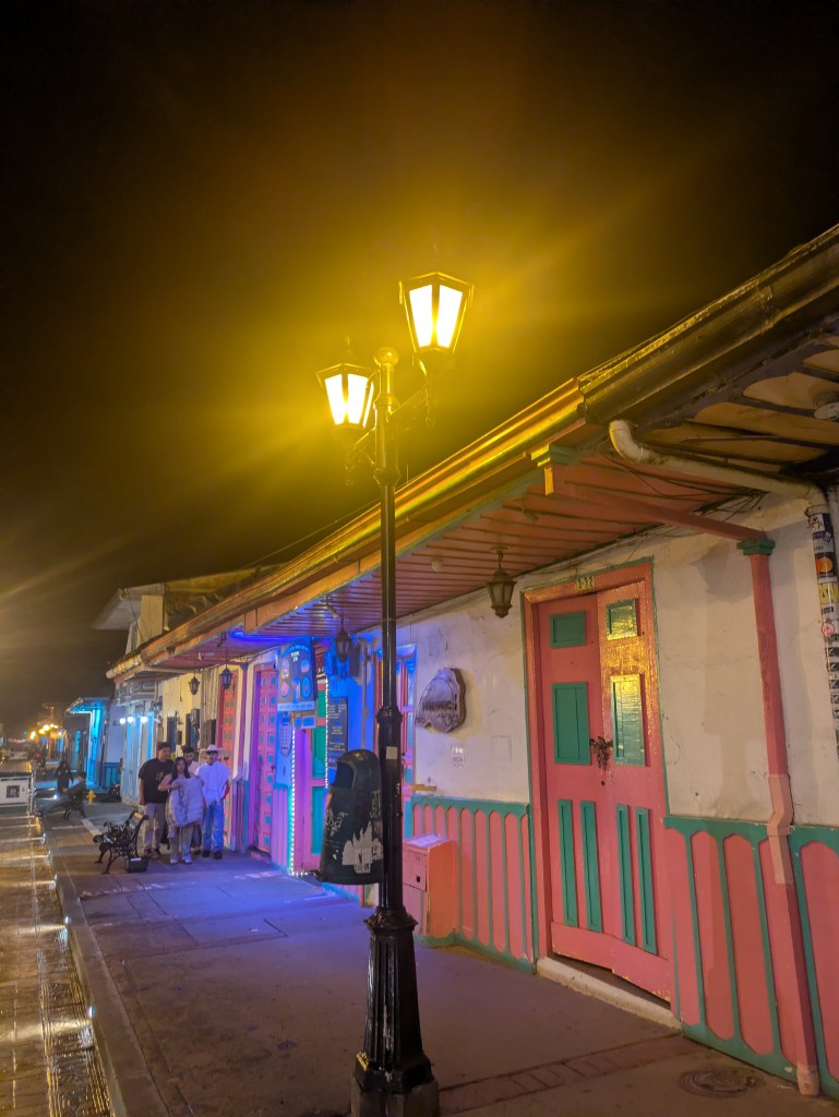 I soon arrived in Armenia and it wasn’t hard to find the collectivo heading to Salento. ยฃ1.60 and 40 mins later I was there. Do the usual thing of check into the place, sling the bags in and have a wander round town. Yes it was a very relaxed and nice place that felt like a more colourful mini version of some of the nicer colonial cities we visited, like San Cristรณbal or Antigua. After getting the lay of the land I had some dinner in town then stopped by the Viajero Hostel and had a drink and chatted to some folks.