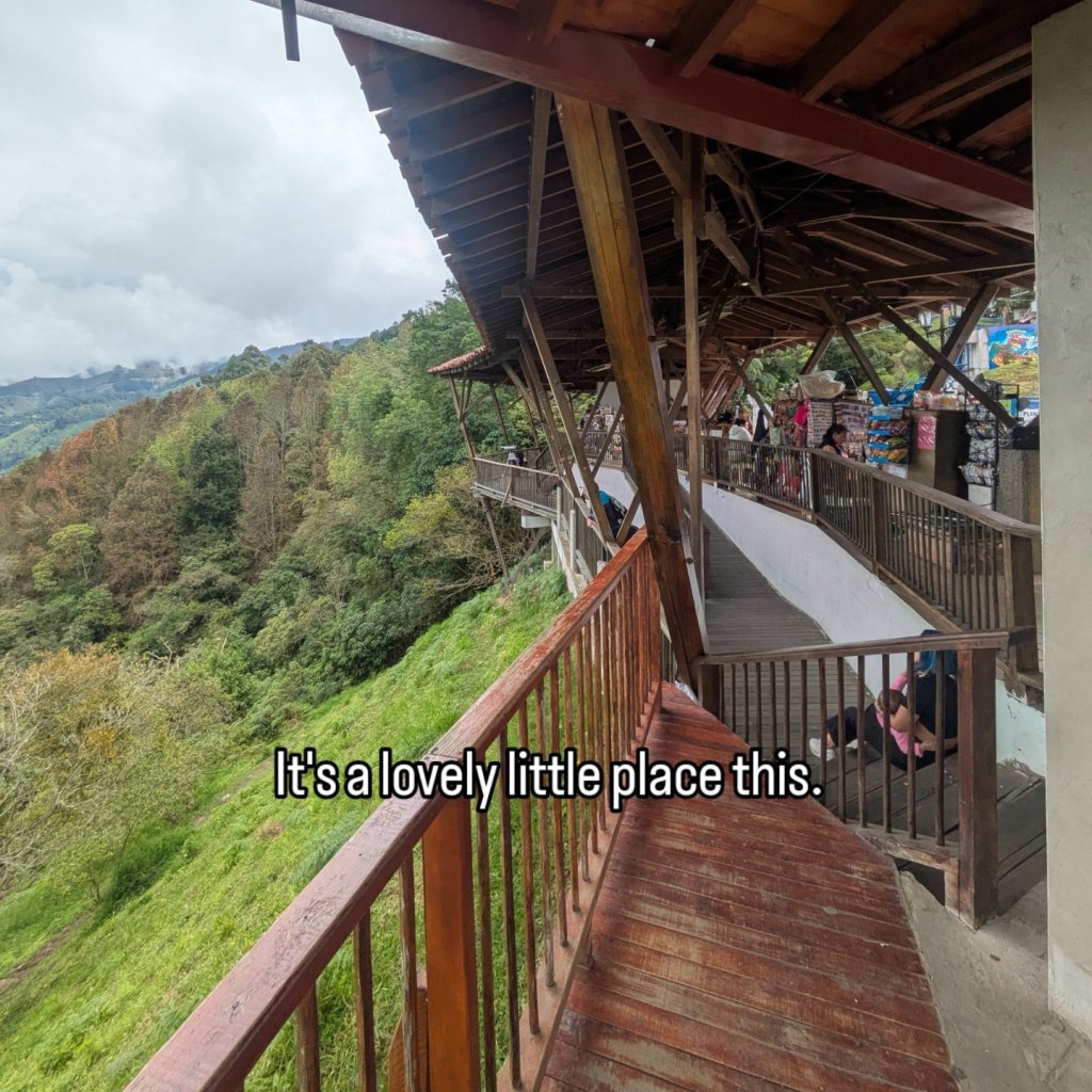 The next day I decided to go have a look around some of the different Miradores on the edge of town just to do something for the day. It was quite steep to get up but they offer a great view of the whole town and the valle de cocora (which we will cover on a separate post). The weather up here is also similar to Manizales, as such at each stop I found myself sheltering from rain like it was the end of summer in Wales.