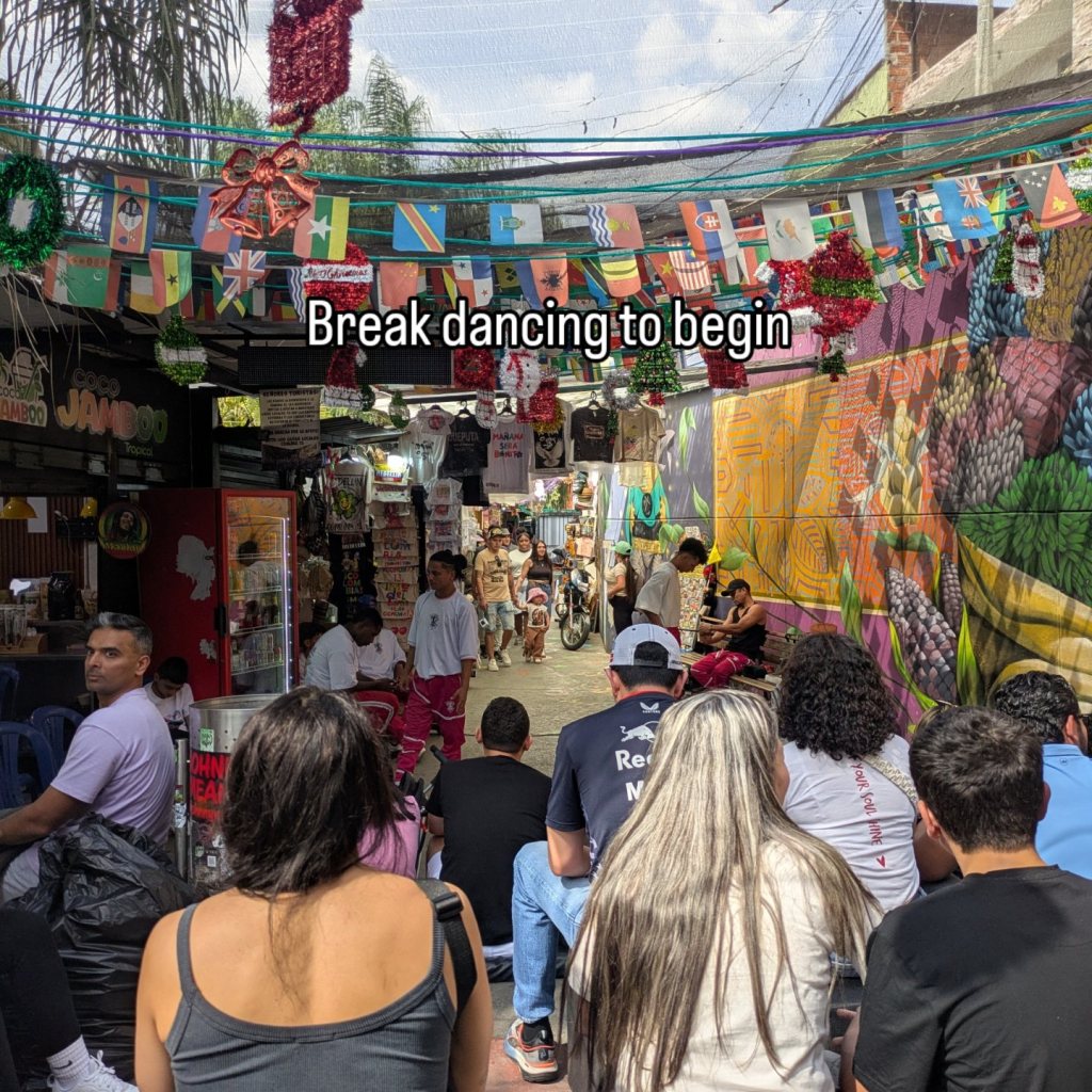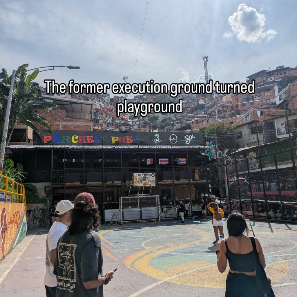 1.30 our tour starts with this guy called Luis or Lucho as he is known taking us for a walk through these Barrios and the first stop is this little makeshift theatre area where we all grab a beer and watch a break dancing show. This is a common thing in this city, you can be out having lunch and 3-5 guys might show up and start break dancing. Obviously they want a tip at the end but is what it is. Before we start the ascent we pass through playground which used to be the cartel execution ground and Lucho explains that back in the day everyone would pretty much be made to watch when they were executing someone. Must have been brutal and to think this was happening here up until the early 90’s!