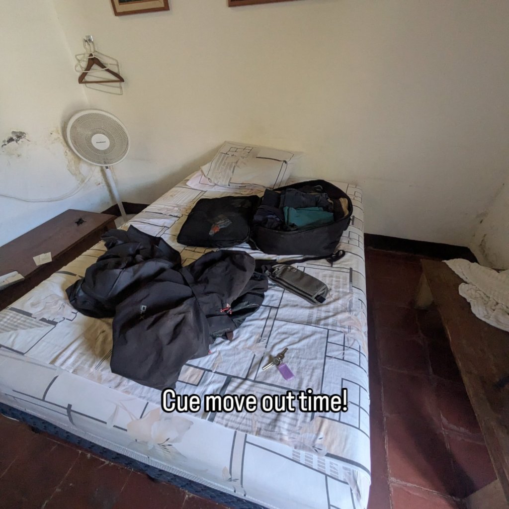 Saturday rolls round. I get my laundry, desayuno and am out. Repack and haul the gear 10 mins up the road and I’m in my new hotel at 1130. Better I can check in early. Lovelllyyyy!
