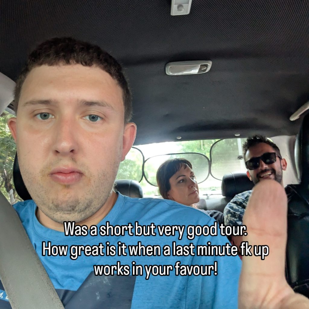 Inside are 3 others and I say “hablas inglés, español or?” “Los ambos” the girl in the front is chatting to drive and I quickly clock that these 3 are Españoles and ask. “Si” muy bueno and they speak the dialect I know and understand near perfectly one bloke and 2 very fit chicas. We’re chatting in the car and one of them lived in Aberdare for 4 years teaching Spanish in a school in Cardiff. Crazy world! The vibe here is good and I Have to say the day is looking up and so is mae butty Bach!! 🤣 ayayay joder behave Boí!!