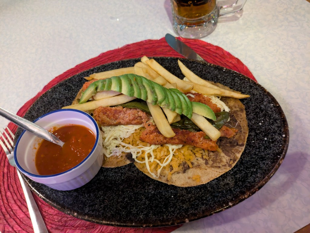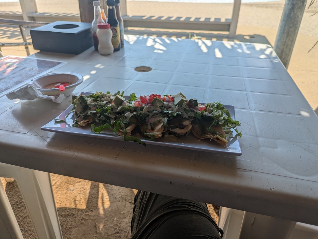 It was a slow start all round and decided to walk down to la playa. It is about a 40 minute hike through the city but hey one way to get the steps in! Once I got there I had a cuppa and some apple juice in this beach resteraunt and stayed for breakfast/lunch too – went for a pescadilla – a quesadilla crispy fish taco and some salad. Fue rica!! 😋. This dish can be made with cod, Pollock, haddock or other shore fish. One I’ll deffo try to do when I’m home.