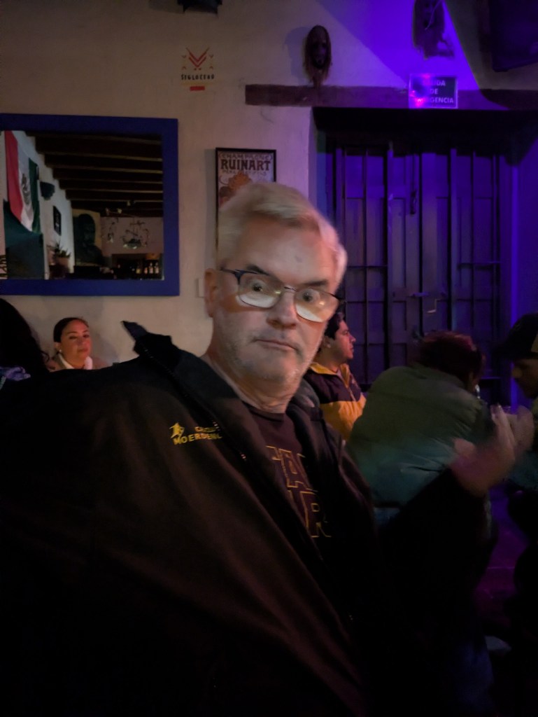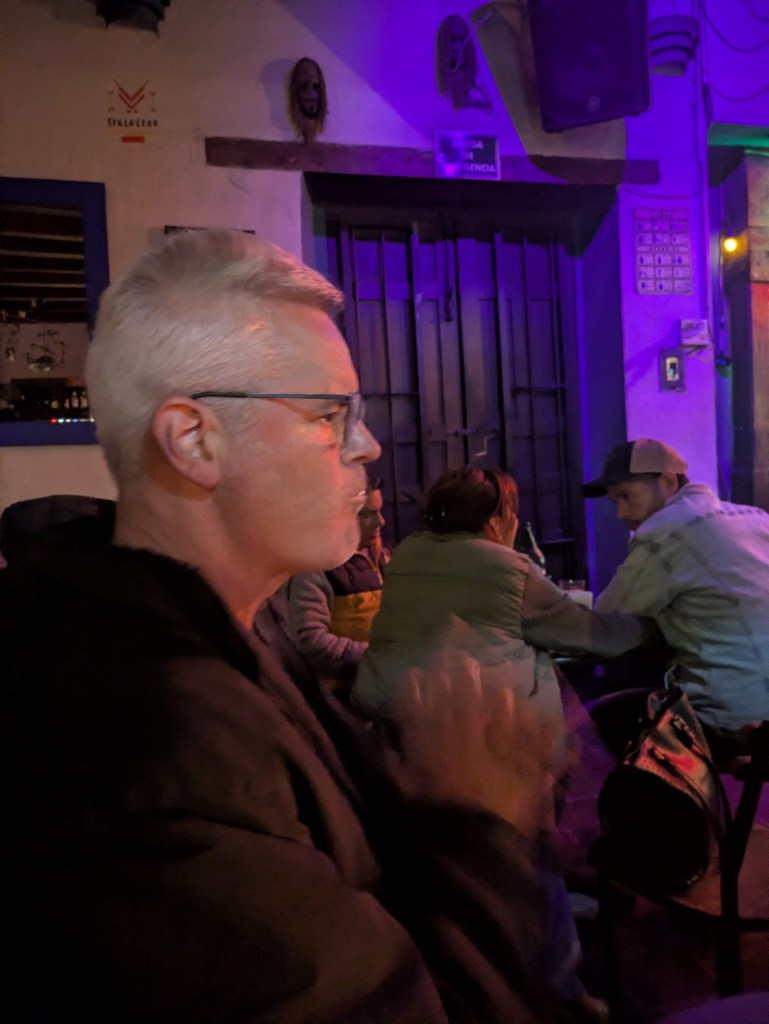 Meet new Best Friend Ricky from the Deep South. This lad is a Crazy Georgian fella from Atlanta and now lives Here in Mexico. He is a very knowledgeable bloke who has been to 60 countries in his life and me and him got on like a house on fire. We are into very much the same stuff. He even has been to Wales and is pretty knowledgeable on the history; he spent 2 months volunteering on an archeological dig up By Castell Henllys near Fishguard some years ago around the time they built the Iron Age village replica. Said the locals of Pembrokeshire loved him. We end up having a few beers and tequilas there then head on to a vino bar where we then also bump into an English pal of mine who I’ve also been hanging round with and we have a good craic.