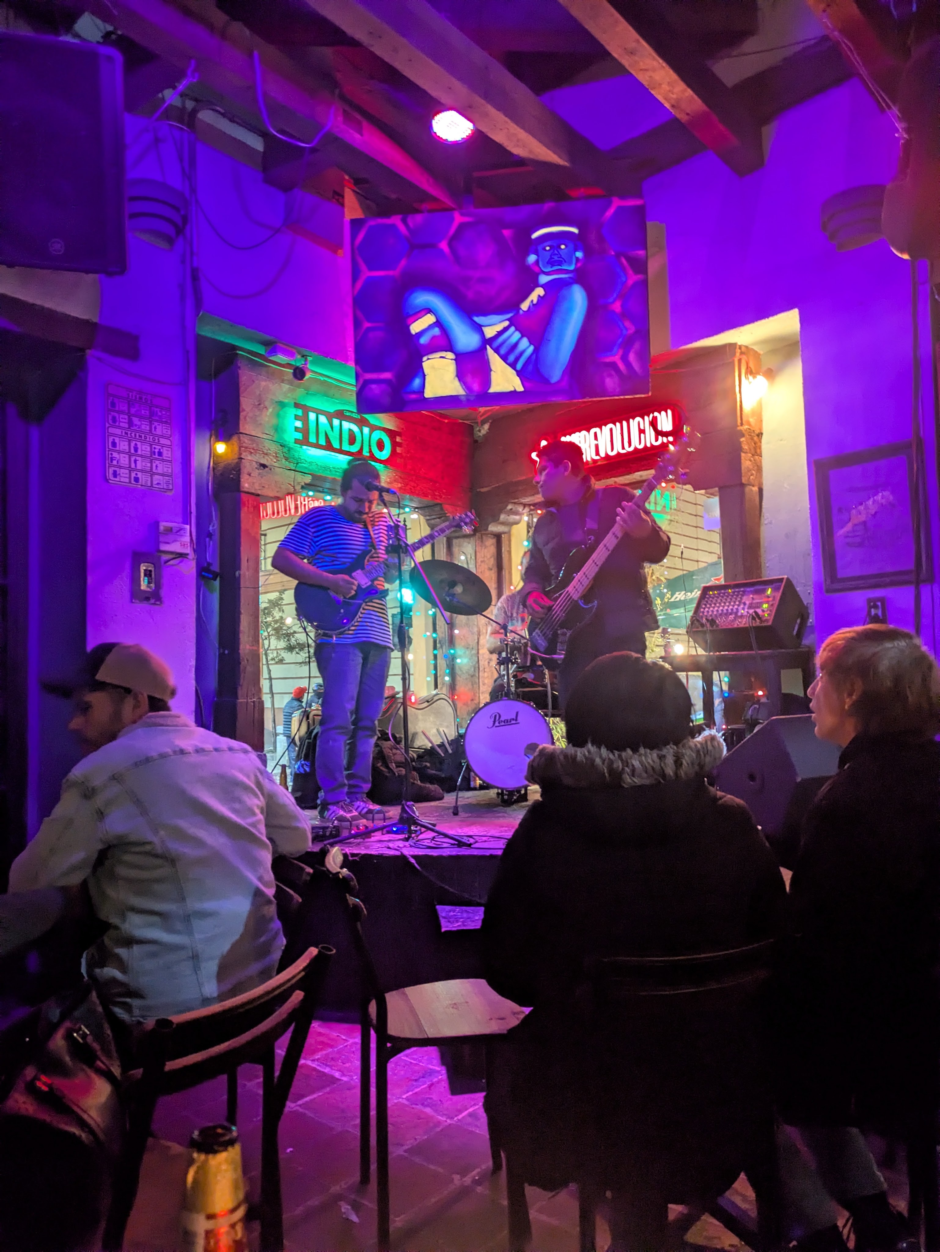 Go to the shower and no water…..I come this close 👌to packing up asking for a refund and going somewhere else it’s not late in the day, but I calm down and politely ask whats going on and simple matter – they were working on pipes and forgot to switch it back on when they were done. Could have told me but hey ho. Had to wait another half hour but finally I am able to have my first hot shower that’s actually hot in a week! I freshen up then head out and go get some food then end up watching a rock band in this one place. I think I can hang round this town for a while as not mentally ready for the 12 hour journey into Guatemala just yet………