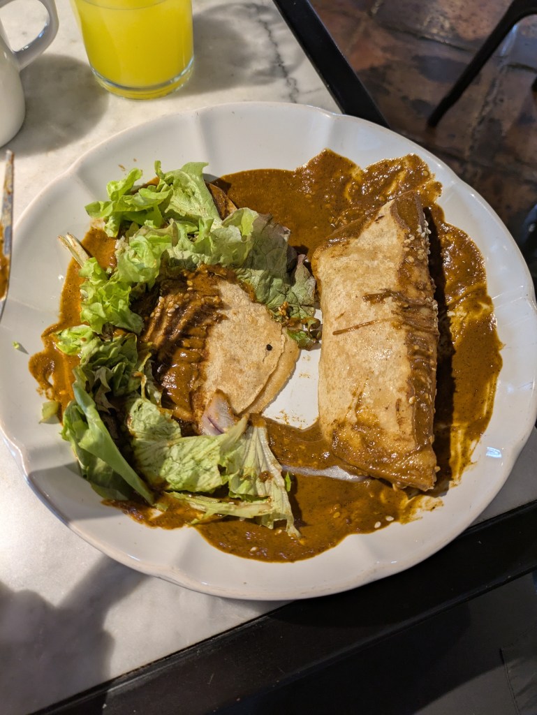 So then we hit Saturday, which is the start of Día de los muertos. I get up and have a walk down to the square and everyone is getting into the spirit of things lots of people decked out in the full gear it is quite something to see albeit a small thing – if you wanted to see a huge parade you would have to be in CDMX or Oaxaca. After this I get a message from southern pal and says come join him and his Landlord for a coffee. I obliged. His landlord is a pretty chill guy, another Venezuelan who got out of Venezuela a long time ago. We had some more coffee chatting then went for lunch in lovely locals place.